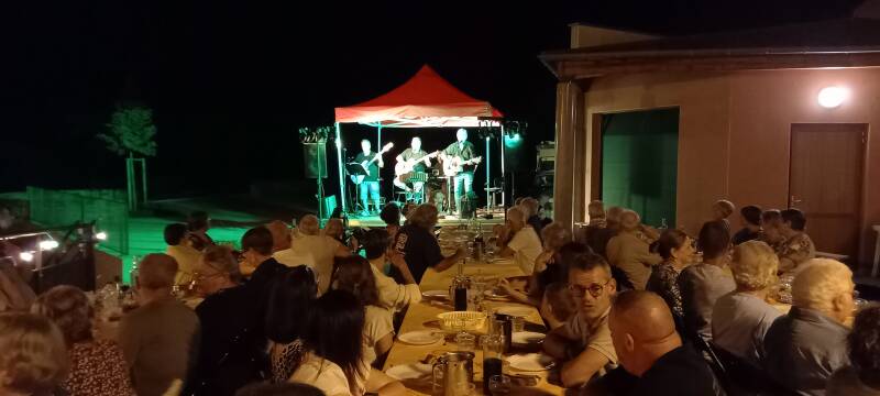 C'est à dix neuf heures trente que commençait l'apéritif concert pour une heure et demi de chansons françaises d'ambiance interprétées à la perfection par la formation Jyves venue de Villemoustaussou dans l'Aude. Georges Brassens, Jean Ferrat, Jacques Brel, Pierre Perret, Alain Souchon, Michel Delpech, Joe Dassin, Francis Cabrel, Claude Nougaro, Patrick Bruel et Renaud étaient au programme. Coca, Perrier, Bière pression et Kyr à la châtaigne étaient proposés aux participants pour accompagner cet intermède musical.