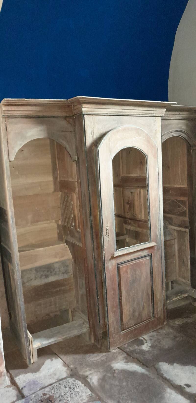 Philippe, Michel, Jeannette, Nadine, Marie-France et Aimé ont participé à la restauration du confessionnal. La porte a été restaurée par Sébastien Guiral.