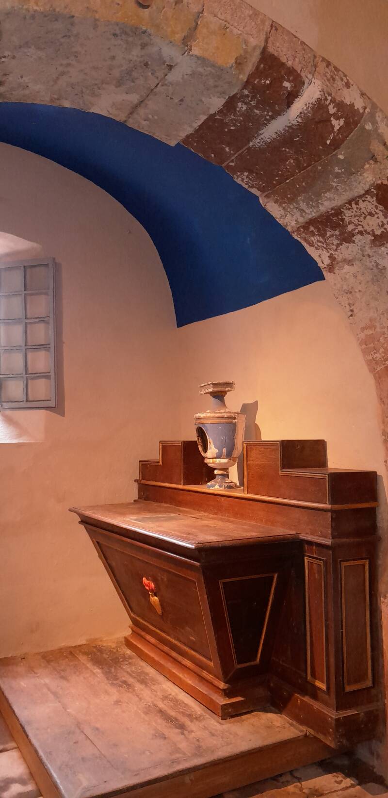 Les murs de la sacristie sont terminés et le meuble a été restauré.