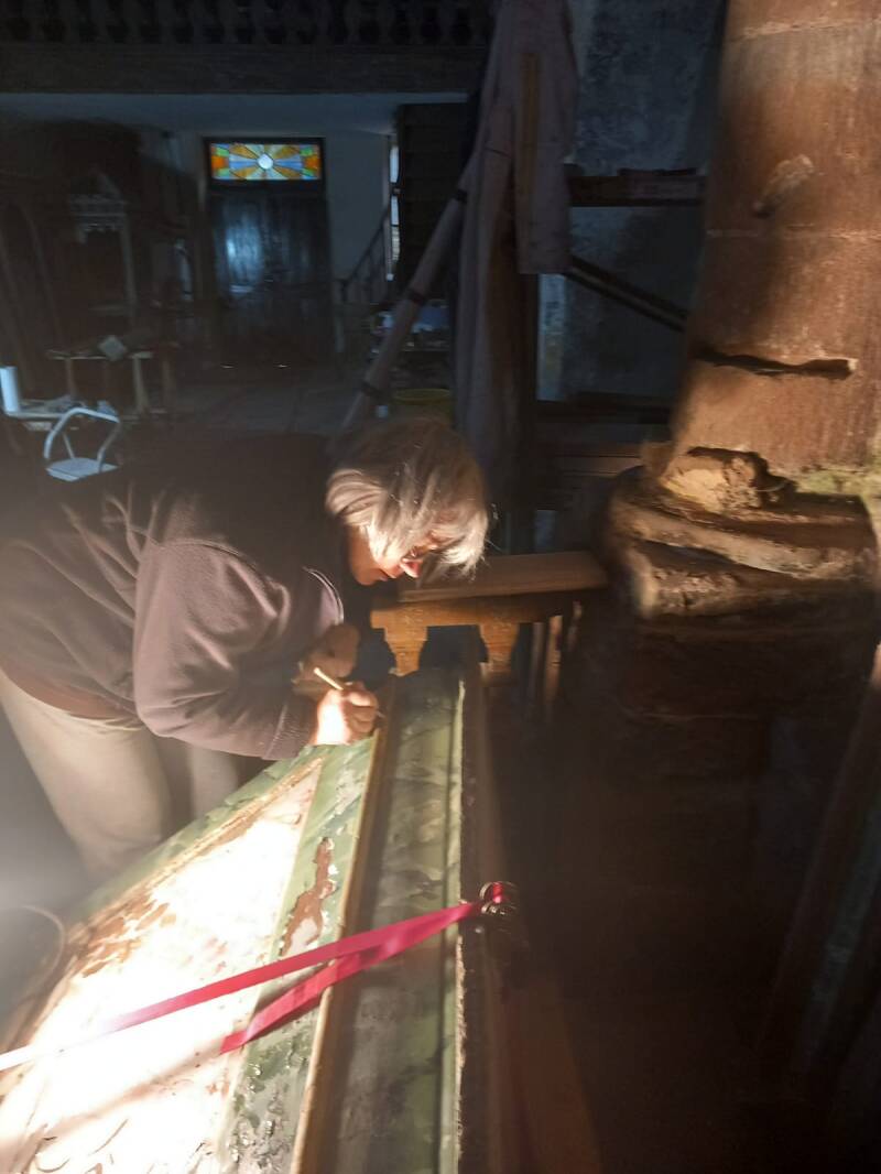 Betty et Daniel ont travaillé à la réfection de la voute et au badigeonnage, Jeannette a restauré l'autel.